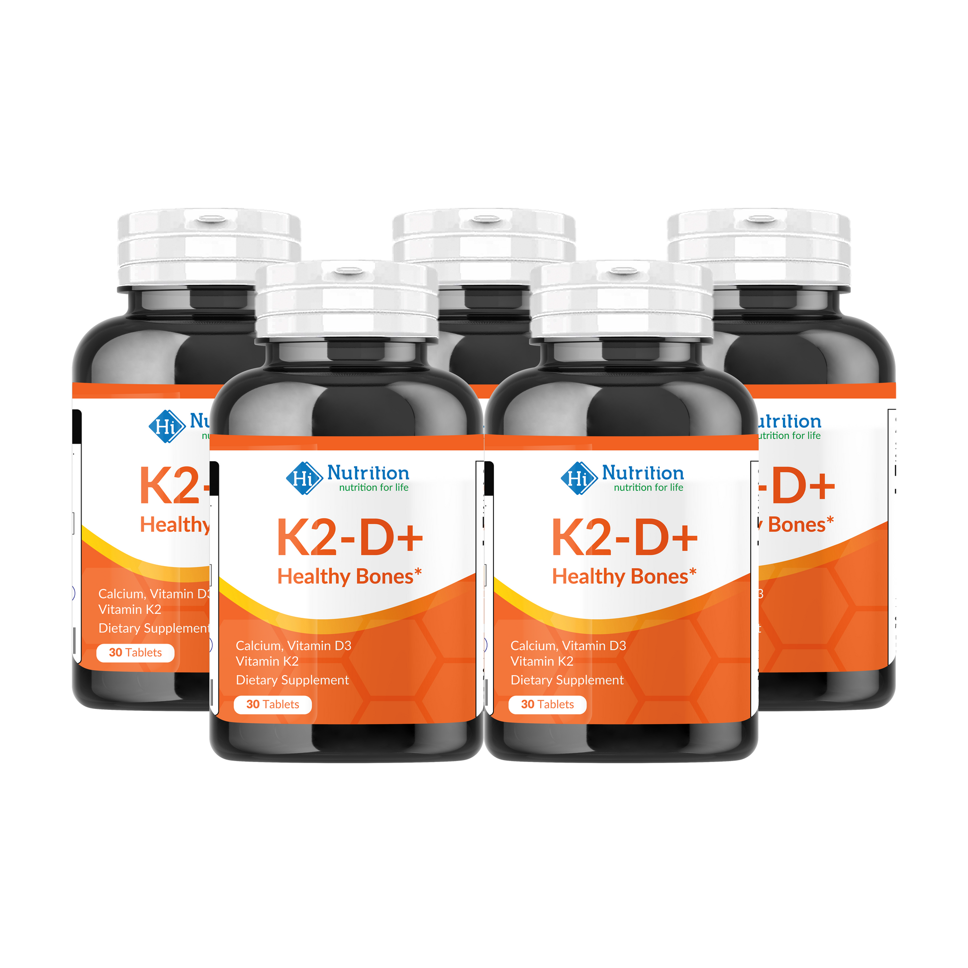 K2-D+ is the ultimate supplement for promoting strong bones, healthy teeth, and supporting cardiovascular health. Formulated with a potent blend of Calcium, Vitamin D3, and Vitamin K2, this daily supplement ensures calcium is effectively absorbed and directed to your bones, reducing the risk of osteoporosis and fractures. It also plays a key role in muscle function, blood circulation, and nerve transmission, while preventing calcium buildup in arteries and soft tissues, promoting a healthy heart.